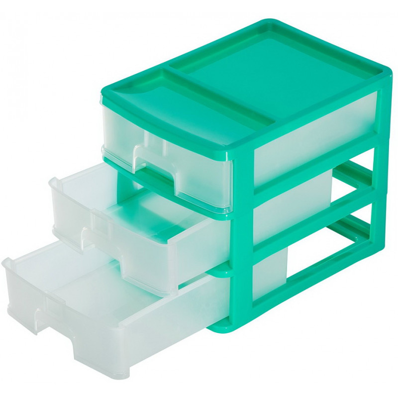 Комод міні настільний великий має три прозорі висувні ящики, в які легко поміщаються усі необхідні дрібниці. Комод використовується для зберігання офісного паперу формату А4, в один ящик вміщується до 500 штук листів, так само зручно складати канцелярське приладдя, предмети для творчості, кольорові олівці, дитячі іграшки, предмети особистої гігієни, косметику, серветки і інші необхідні дрібниці. Комод міні виготовляють з кольорової високоякісної пластмаси. Пластиковий міні комод практичний і компактний, стійкий до перепадів температури, що дозволяє розміщувати його у ванні, на кухні, в дитячій, в коморі кімнаті і у будь-кому другом необхідному приміщенні. Комод зручний і швидко збирається, а завдяки незначній вазі його можна легко переносити до будь-якої кімнати. Міні комод допомагає упорядкувати дрібні речі, це необхідний предмет для тих, хто любить порядок і вважає за краще, щоб кожна річ мала своє місце. Розміри: 35,5х25, 5х28, 5см. Виробник: Україна.