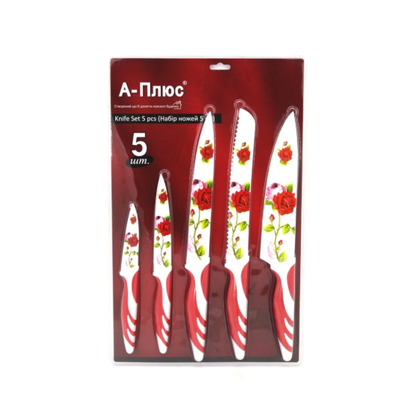 Ножі 1008 набір на блістері з малюнком 5шт кераміка