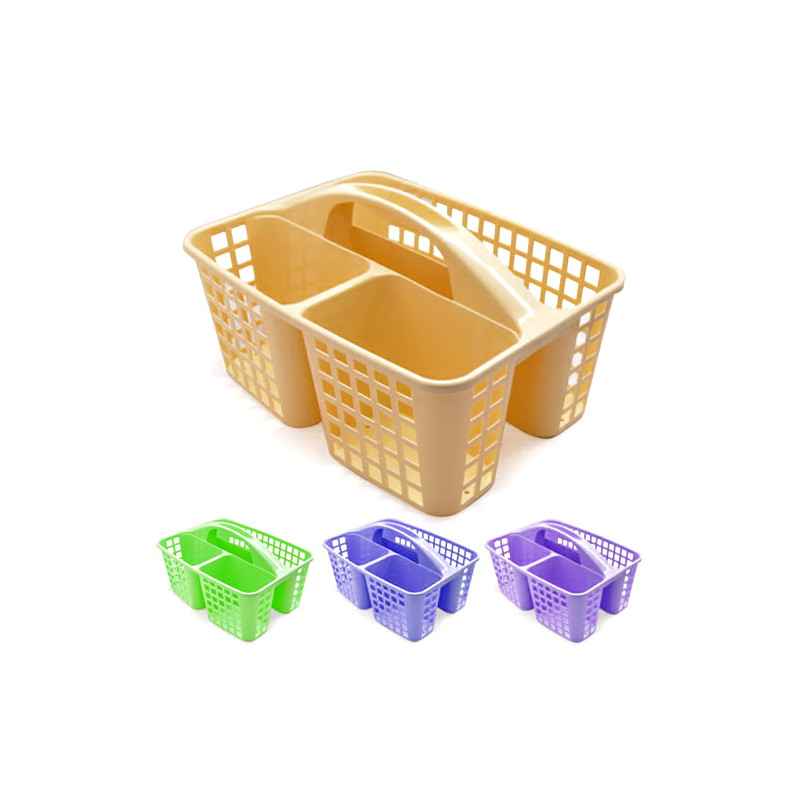 Корзина органайзер з ручкою містка і надійна, ідеально підійде для зберігання побутової хімії, витратних матеріалів або інших дрібних речей. З кошиком органайзером миючі засоби, губки, пакети, інструменти та інші необхідні речі будуть завжди під рукою. Стінки органайзера з ручкою мають отвори для циркуляції повітря. Універсальний кошик органайзер з ручкою виготовлений з міцного, високоякісного, кольорового пластику, безпечного для здоров'я.