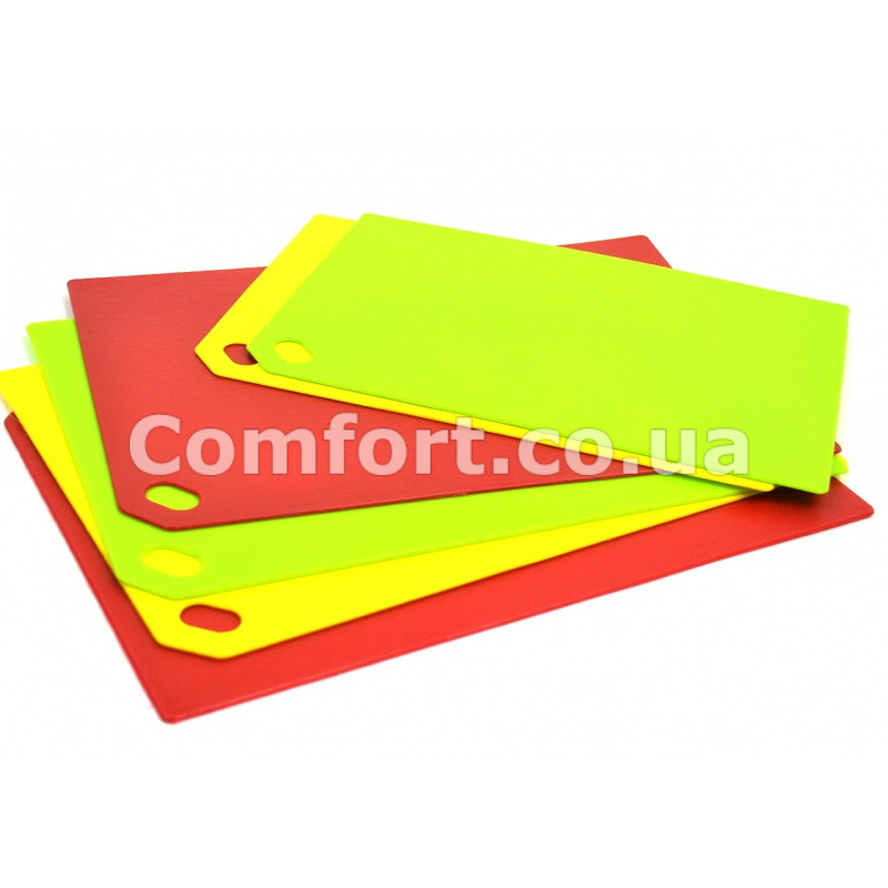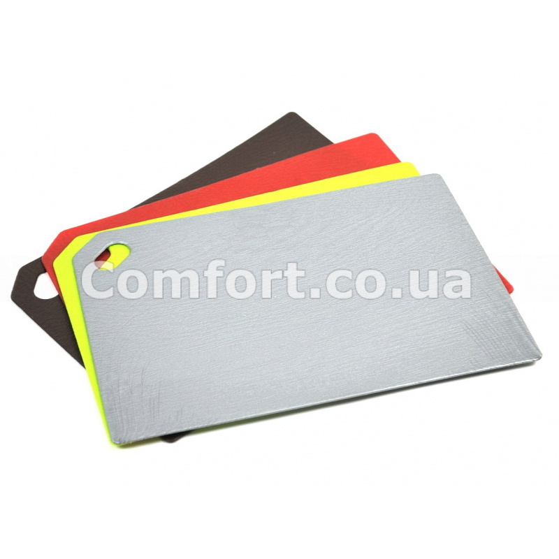 Дошка кухонна обробна прямокутної форми, гнучка, легка, компактна це дуже зручно, наприклад, щоб висипати нарізані овочі або м'ясо в каструлю або відразу в сковороду. Дошка ідеальна для нарізки овочів, фруктів, м'яса, риби і інших продуктів, не ковзає по гладкій поверхні кухонного столу. Обробна дошка надійна і довговічна, її поверхня не вбирає запахи і допомагає ножам довго не тупитися. Після використання обробна дошка легко миється навіть під струменем холодної води або в посудомийній машині. Кухонна обробна дошка м'яка проста і якісна виготовлена з надійного харчового термостійкого пластика. Обробна дошка має зручний отвір для підвішування, щоб вона завжди була під рукою і не займала багато місця. Перевагою м'якої обробної пластикової дошки для нарізки є її невелика вага і компактність. Розміри: 40х28см. Виробник: Україна.