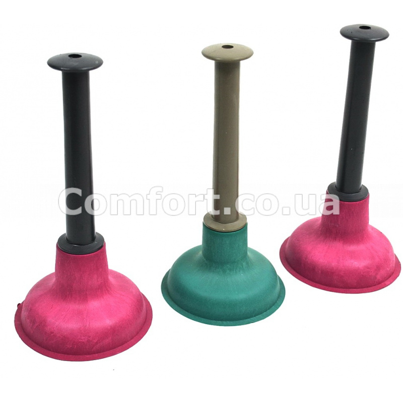 Вантуз Горизонт гумовий зі знімною прямою пластмасовою ручкою, використовується для механічного прочищення засоров в трубах каналізації і видалення з них повітря, що перешкоджає руху води. Вантуз складається з якісного гумового клапана і міцної високоякісної пластмасової ручки. Вантуз побутовий це незамінний аксесуар в кожному будинку, кожна господиня самостійно швидко і легко може прочистити сливи, що засмітилися, без допомоги сантехніка. Гумовий вантуз ефективно справляється з усіма засорами, він зручний і компактний, легко миється. Вантуз - ручний сантехнічний інструмент, принцип роботи якого дуже простий і подібний до принципу дії насоса. При появі засора труби, необхідно встановити вантуз у ванну або раковину так, щоб гумове кільце приладу повністю покривало отвір для зливу води. Після цього треба потягнути на себе ручку пристрою, внаслідок чого під гумовою насадкою, що покриває отвір для зливу, утворюється вакуум. У міру руху ручки вантуза вгору - вниз, бруд, що скупчився у водостоці, проштовхуватиметься по трубі, поки повністю не піде в каналізацію. Застосування вантуза для усунення засмічень труб дозволить Вам повністю відмовитися від використання агресивних хімічних речовин, що розчиняють засмічення, а разом з ними що руйнують труби, а також вкрай негативно впливають на екологію. Вантуз ідеально підходить для усунення засоров раковин, ванн, унітазів, биде, душей. Розміри: 10х22,5см. Виробник: Україна.