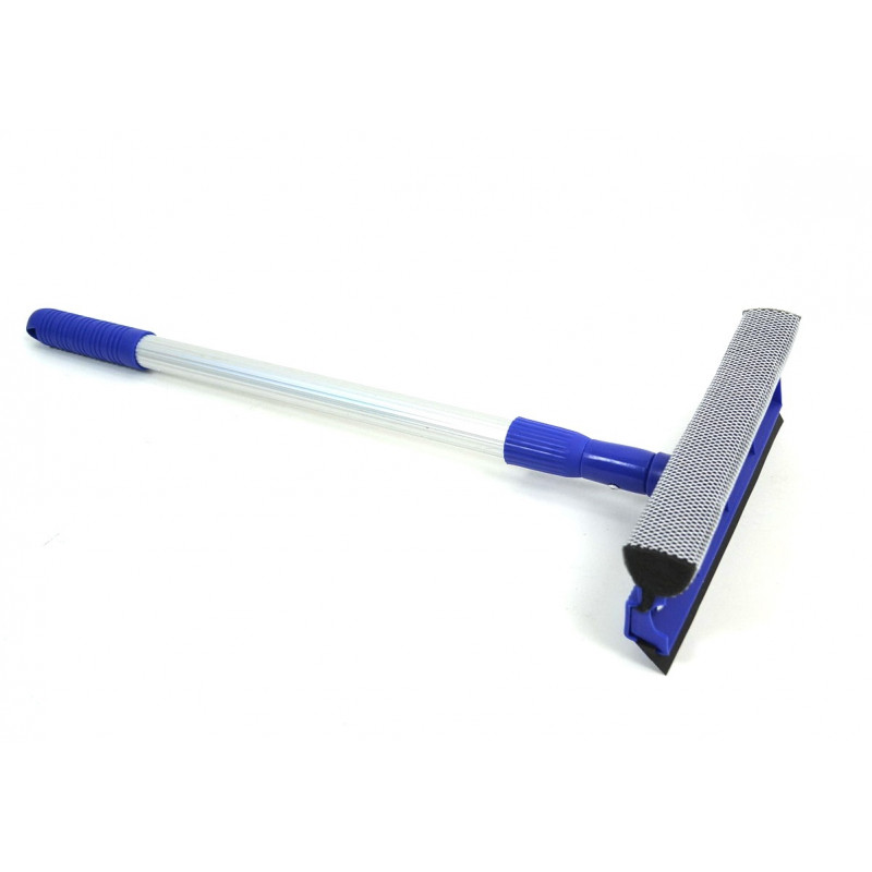 Окномой 54862 телескоп незамінний і ефективний помічник в кожному будинку, призначений для миття вікон, скляних і дзеркальних поверхонь. З одного боку швабра для миття стекол, дзеркал забезпечена скребком з якісної гуми, який знімає основний бруд і вологу, а з іншою має поролонову губку, яка ідеально миє вікно у вологому стані. Швабра для вікон має телескопічну розсувну ручку, яка регулюється по висоті, для зручного використання. Ручка держатель телескопічна виготовлена з міцного високоякісного металу, що робить окномойку легкою і зручною у використанні. Регульована телескопічна ручка дозволяє очищати високі вітражі. Зайву вологу видаляємо за допомогою гумового скребка, а досконального результату досягаємо за допомогою насадки, яка легко усуває будь-які забруднення і розводи, добре вбирає вологу. Щітка для миття стекол розкладається від 57см до 87см, що дозволяє мити вікна без використання драбини. На кінці ручки є спеціальна петля, завдяки якій окномой після використання можна підвісити у будь-якому зручному місці. Єврошвабра для вікон з телескопічною ручкою дозволяє господині швидко і легко, а головне якісно мити вікна. Відмінна стекломойка супер якості тільки у нас за дійсно доступною ціною! Розміри губки : 21х8см. Довжина ручки : 57-87см. Виробник: Польща.