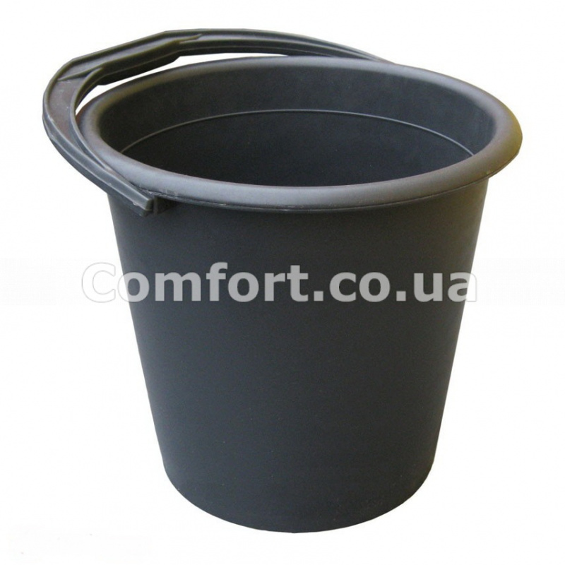 Відро 11,5л пластмасове, чорне, міцне, круглої форми, необхідна річ в кожному будинку, призначене для зберігання і транспортування рідких і сипучих матеріалів. Відро виготовлено з пластмаси другого сорту. Пластикове відро для садово-городніх робіт має зручну перекидну ручку, гладкі стінки, легко миється водою та іншими миючими засобами, має високі зносостійкі якості. Компактне пластикове чорне відро зручно використовувати в будь-якій господарській сфері.
