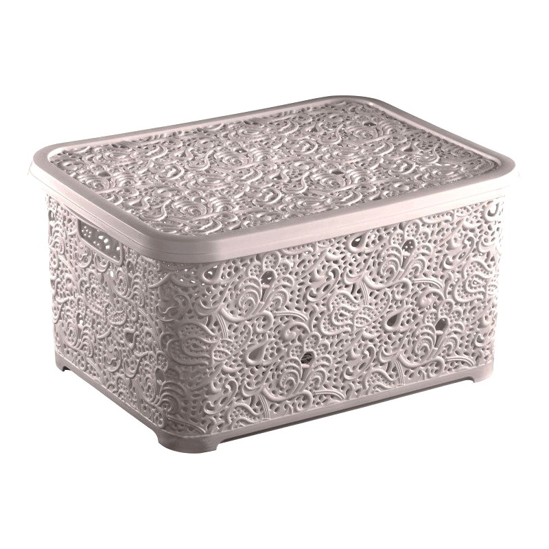 Кошик 9,5л 377 ажур з кришкою, призначений для зберігання предметів, дрібних речей, відмінно підійде для зберігання дитячих товарів, іграшок, косметики, канцелярського приладдя або інших корисних дрібниць. Контейнер виготовлений з високоякісного кольорового пластику, безпечного для здоров'я. Конструкція органайзера для зберігання ажур з кришкою являє собою прямокутний контейнер, на бічних стінках є отвори для циркуляції повітря, з їх допомогою кошик зручно переносити. Корзина ажур укомплектована кришкою, яка захищає речі від пилу і бруду. Дизайн кошику ажур для зберігання відрізняється яскравістю, оригінальністю має унікальний вид. Пластикова корзина з кришкою виконана у вигляді ажурного візерунка. Кошик для зберігання ажур з кришкою має широкий асортимент кольорів. Корзина для зберігання ажур з кришкою компактна, легка, міцна і містка, максимально підвищує рівень зручності, не вимагає особливого догляду. Кошик ажур - стильний аксесуар для кожного будинку. Елегантний витриманий дизайн кошика ажур з кришкою дозволяє їй органічно вписатися в будь-який інтер'єр і стати його елементом. Практична корзина ажур для зберігання необхідна в кожному будинку, вона не залишить Вас без уваги.