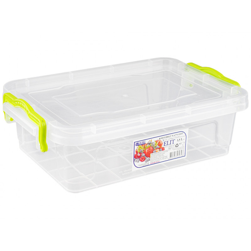 Бокс контейнер пластмасовий плоский 1,8л універсальний, харчовий з ручками засувками, призначений для зберігання, транспортування продуктів чи готових страв та їх заморожування чи розігріву. Ємність прямокутної форми комплектується кришкою, яка щільно закривається та додатково фіксується ручками контейнера, це перешкоджає випадковому відкриттю кришки. Прозорі стінки судочка дозволяють бачити вміст у ньому. Бокс виготовлений з високоякісного харчового пластику, який може контактувати з їжею, абсолютно безпечний для здоров'я, не містить шкідливих речовин. Судочок харчовий з ручками засувками підходить для використання в посудомийній машині, холодильнику, морозильній камері, мікрохвильовій печі.