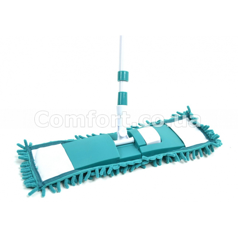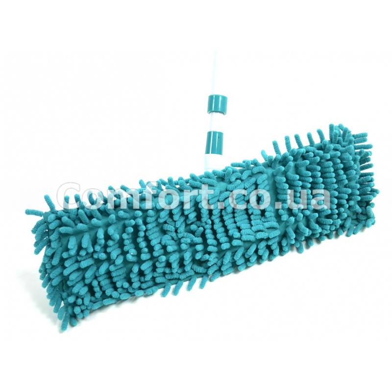 Швабра натирач лапша 2721 призначена для прибирання в приміщенні, можна використати для вологого і сухого прибирання. Натирач має м'яку змінну насадку з мікрофібри, яка при сухому прибиранні відмінно збирає пил, а при вологому прибиранні вбирає воду і бруд подібно до губки, не залишає розводи і ворсинки. Натирач оснащений зручною металевою телескопічною ручкою з рухливою частиною і фіксацією, яка дозволяє використати його у важкодоступних місцях. Кнопковий режим на підставі натирача дозволяє швидко і легко знімати насадку.