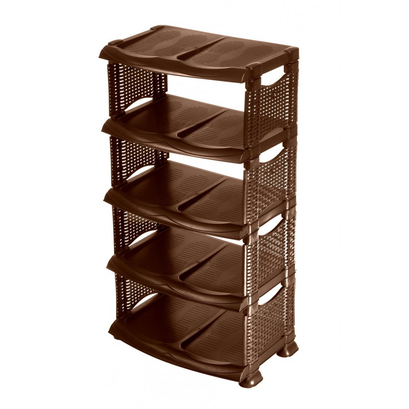 Поличка для взуття необхідний предмет меблів для кожного будинку. Взуттєва полиця ротанг пластмасова відкрита призначена для зберігання взуттю, дозволяє звільнити місце, і навести порядок в передпокої і зручно розмістити, усе взуття, не займаючи багато простору. Взуттєва полиця ротанг преміум-класу зручна і практична, можна розмістити в передпокої, коморі або на балконі, легко і швидко розбирається, можна зібрати будь-яку кількість ярусів, на одному ярусі поміщається дві пари взуття. Полиця для взуття ротанг міцна і компактна, стійка до вологості, добре миються. Відкрита полиця для взуття ротанг дуже зручна, завдяки наявності в ній безлічі відділів, що дозволяє вмістити велику кількість взуття. Поличка взуттєва виготовлена з міцної високоякісної кольорової пластмаси, бічні стінки декоровані під штучне плетіння ротанг, складається з п'яти ярусів. Розміри: 48х30,5х86см. Виробник: Україна.