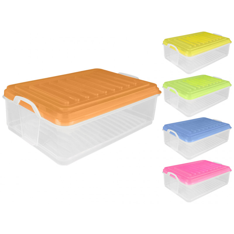 Контейнер Ромашка 1,7л призначений для зберігання та транспортування продуктів або готових страв. Контейнер пластиковий, прямокутної форми, з кришкою, що щільно прилягає в комплекті, яка міцно закривається і захищає від протікання, перешкоджає висипанню вмісту і проникненню в бокс дрібних комах і пилу. Ємність для зберігання продуктів виготовлена ​​з міцної, високоякісної, харчової пластмаси, може контактувати з їжею, абсолютно безпечна для здоров'я, має широкий температурний режим застосування, що дозволяє використовувати його як при заморожуванні продуктів, так і при нагріванні в мікрохвильовій печі.