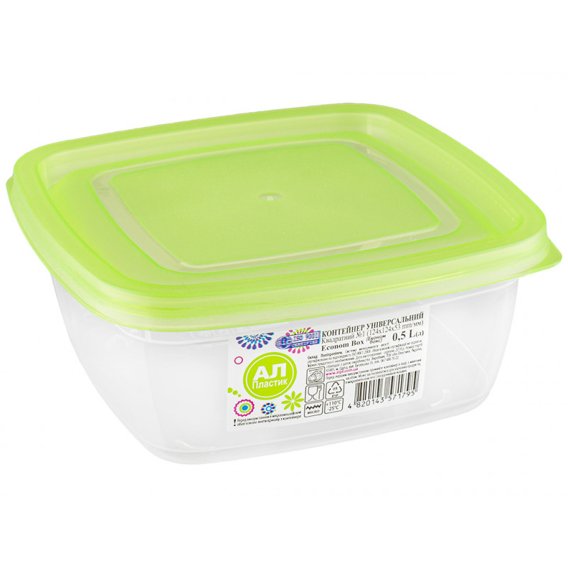 Судок контейнер економ 0,5л квадратний, виготовлений з високоякісного, харчового пластику, використовується для зберігання, транспортування, заморожування або розігріву продуктів. Харчову ємність для бутерброду, салату, горішків або інших продуктів використовують у будинку, в їдальнях, в кафе, в ресторанах, в магазинах. Універсальний контейнер квадратної форми має щільну пластикову кришку, яка замикається по периметру, не вбирає сторонні запахи і не має свого. Прозорість судочка допомагає швидко зорієнтуватися у продуктах та легко знайти те, що Вам потрібно. Бокс судок можна зберігати в холодильнику, використовувати в мікрохвильовій печі, підходить для миття в посудомийній машині.