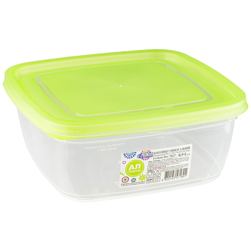 Судок контейнер економ 0,9л квадратний, виготовлений з високоякісного, харчового пластику, використовується для зберігання, транспортування, заморожування або розігріву продуктів. Харчову ємність для бутерброду, салату, горішків або інших продуктів використовують у будинку, в їдальнях, в кафе, в ресторанах, в магазинах. Універсальний контейнер квадратної форми має щільну пластикову кришку, яка замикається по периметру, не вбирає сторонні запахи і не має свого. Прозорість судочка допомагає швидко зорієнтуватися у продуктах та легко знайти те, що Вам потрібно. Бокс судок можна зберігати в холодильнику, використовувати в мікрохвильовій печі, підходить для миття в посудомийній машині.