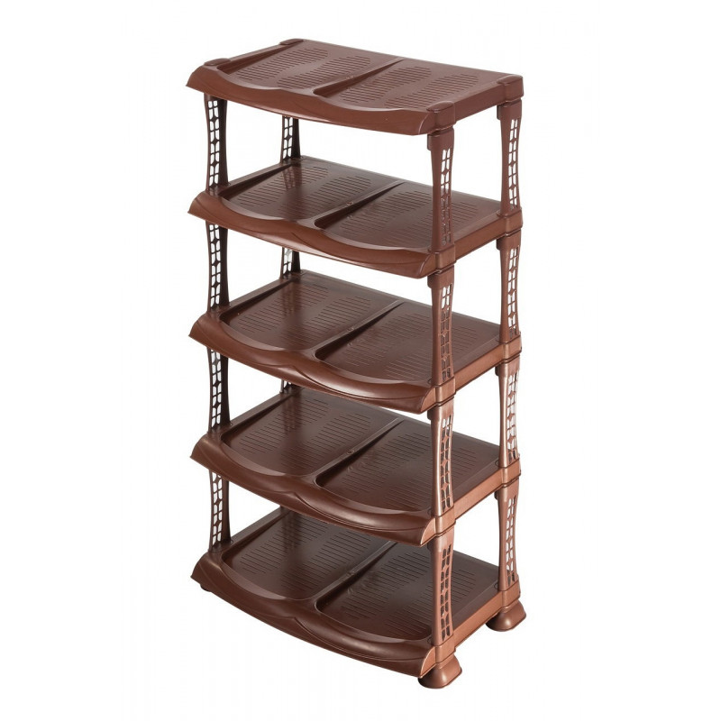 Поличка для взуття необхідний предмет меблів для кожного будинку. Взуттєва полиця пластмасова відкрита призначена для зберігання взуттю, дозволяє звільнити місце, і навести порядок в передпокої і зручно розмістити, усе взуття, не займаючи багато простору. Взуттєва полиця зручна люкс і практична, можна розмістити в передпокої, коморі або на балконі, легко і швидко розбирається, можна зібрати будь-яку кількість ярусів, на одному ярусі поміщається дві пари взуття. Полиця для взуття пластмасова міцна і компактна, стійка до вологості, добре миються. Відкрита полиця для взуття люкс дуже зручна, завдяки наявності в ній безлічі відділів, що дозволяє вмістити велику кількість взуття. Поличка взуттєва виготовлена з міцної високоякісної кольорової пластмаси, складається з п'яти ярусів. Розміри: 48х30,5х86см. Виробник: Україна.