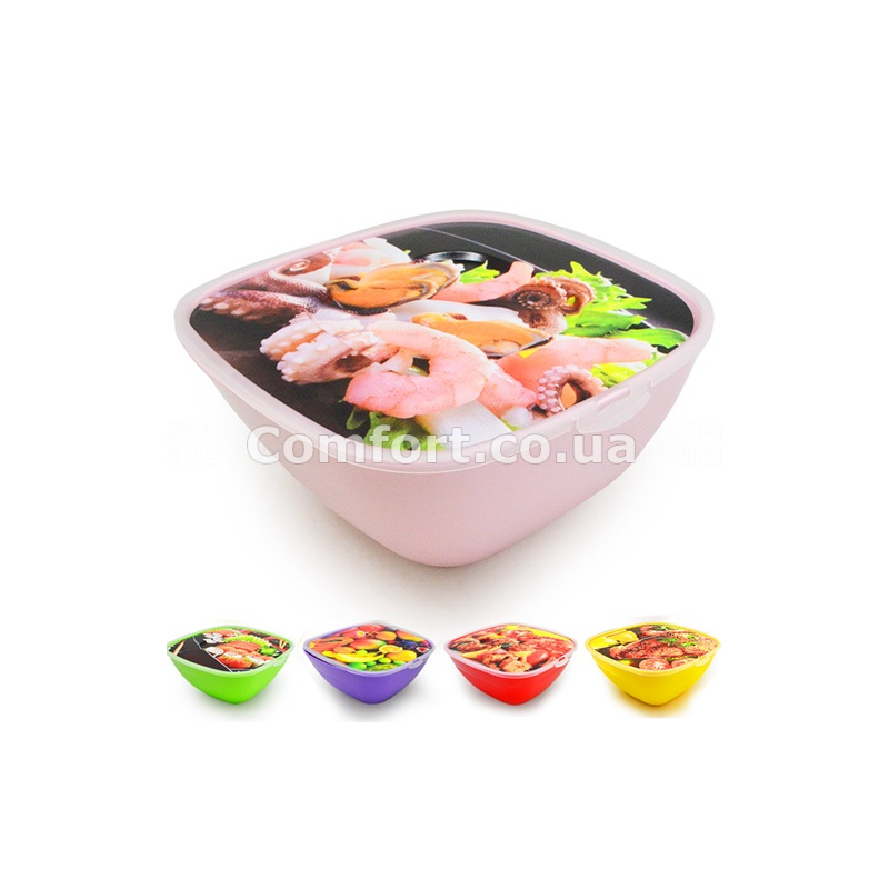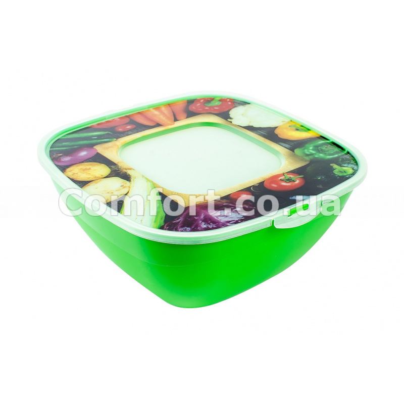 Миска салатник Весна 2,5л декор з кришкою квадратна ПБ-232