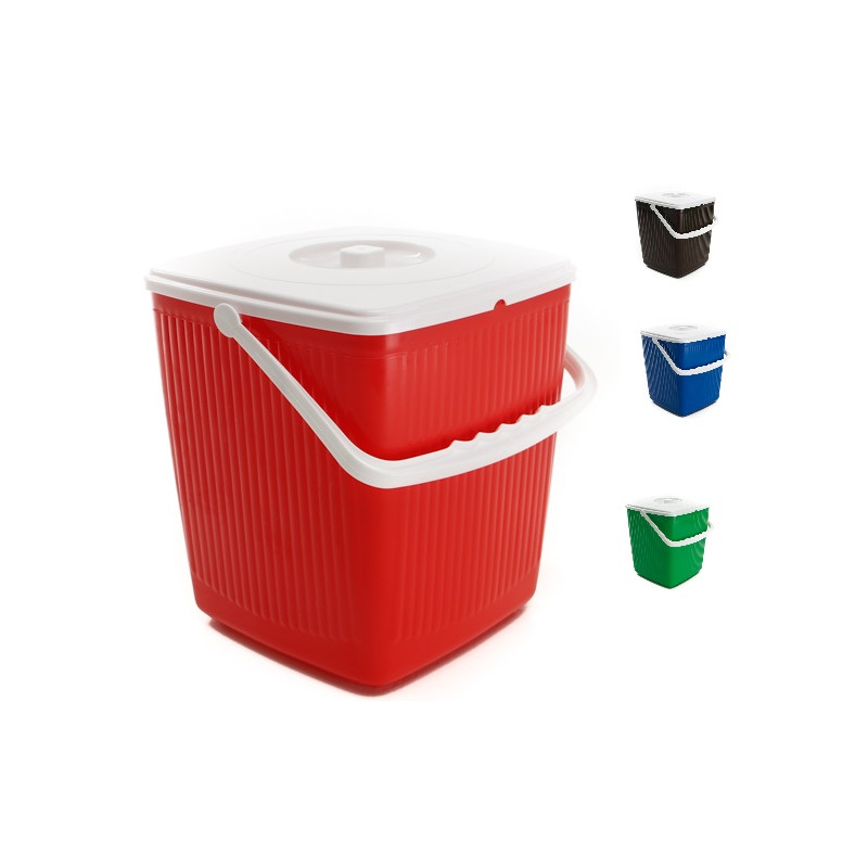 Наявність в комплекті зручної пластикової кришки дозволяє зберігати в відрі матеріали, що вимагають захисту від зовнішнього впливу, а також запобігти поширенню запахів. Пластикове квадратне відро з кришкою легко миється водою та іншими миючими засобами, має високі зносостійкі якості, відмінно підійде для будь-якого виду сміття в будь-якому місці призначення. Компактне пластикове кольорове відро з кришкою зручно використовувати в будь-якій господарській сфері, а широка кольорова гамма допоможе підібрати найбільш відповідне відро для Вашого інтер'єру.