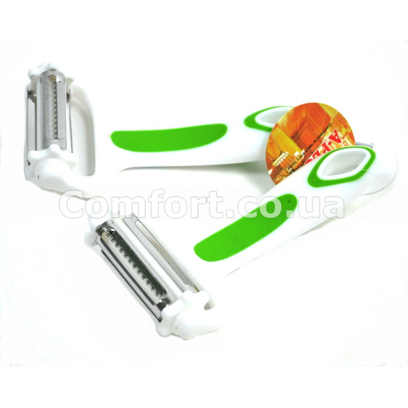 Чищення різноманітних овочів - процес трудомісткий і не дуже приємний, особливо якщо робити це звичайним ножем. Пропонуємо прискорити і полегшити чищення овочів, використовуючи спеціальний ніж. Зручна і легка овощечистка легко знімає шкірку з овочів і фруктів. Ніж має три леза для швидкого видалення шкірки будь-якої товщини і жорсткості. Ручка з міцного пластика не ковзатиме навіть в мокрих руках і має захист від порізів. Ніж для чищення овочів - надійний помічник на кухні.