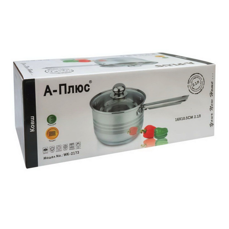 Ківшик виготовлений з високоякісної нержавіючої сталі, яка гарантує практичність, довговічність і бездоганний зовнішній вигляд посуду. Багатошарове 5слоев дно дозволяє рівномірно розподіляти і значно довше зберігати тепло по стінках і дні посуду, що запобігає пригоранню їжі і забезпечує швидше приготування блюд. Кришка з термостійкого скла дає можливість контролювати процес приготування без втрати тепла. Мірна шкала дає можливість точніше підбирати інгредієнти. Акумуляція тепла при закритій кришці створює замкнутий цикл пароутворення, що дозволяє готувати в такому посуді без використання олії і води або ж з їх мінімальною кількістю, а також дозволяє зберегти натуральний смак продуктів. Підходить для різних типів плит, а також індукційних