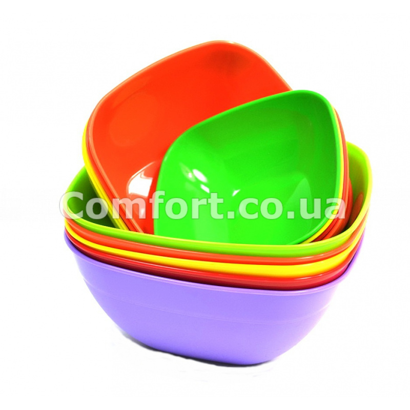 Миска яскравого забарвлення прикрасить інтер'єр будь-якого будинку, стійка до температурних коливань, можна мити в посудомийній машині. Квадратна миска виготовлена з кольорової харчової пластмаси, не вбирає сторонні запахи, легко мити, відмінний подарунок для будь-якої хазяйки.