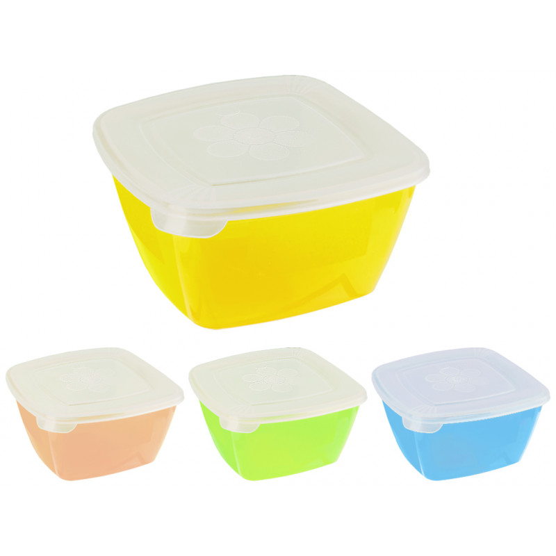 Контейнер Ромашка 0,4л призначений для зберігання та транспортування продуктів або готових страв. Контейнер пластиковий, квадратної форми, з кришкою, що щільно прилягає в комплекті, яка міцно закривається і захищає від протікання, перешкоджає висипанню вмісту і проникненню в бокс дрібних комах і пилу. Ємність для зберігання продуктів виготовлена з міцної, високоякісної, харчової пластмаси, може контактувати з їжею, абсолютно безпечна для здоров'я, має широкий температурний режим застосування, що дозволяє використовувати його як при заморожуванні продуктів, так і при нагріванні в мікрохвильовій печі.