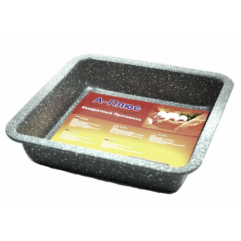Деко виготовлене з високоякісної вуглецевої сталі з мармуровим покриттям, який за своїми характеристиками має підвищену міцність. Деко для випічки швидко і рівномірно нагрівається, він легкий, міцний і довговічний. Деко А-Плюс можна використати для приготування випічки, запікання м'яса, овочів і інших продуктів. Антипригарне покриття дозволяє легко витягати готове блюдо.