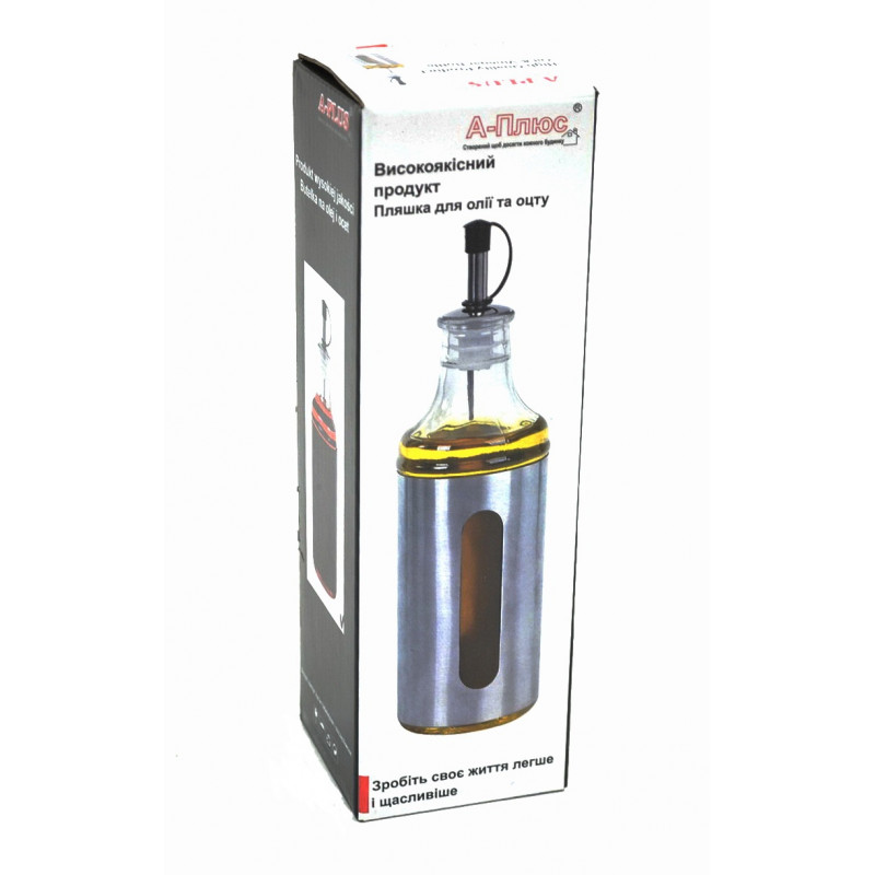 Ємність для олії виготовлена з високоякісного скла, допоможе зберегти олію свіжим і ароматним. Вузька шийка перешкоджає проникненню повітря і окисленню, закривається герметичною кришкою. Скло не вступає в реакцію, не змінює смак олії. Дозовано наливати з таких місткостей набагато зручніше.