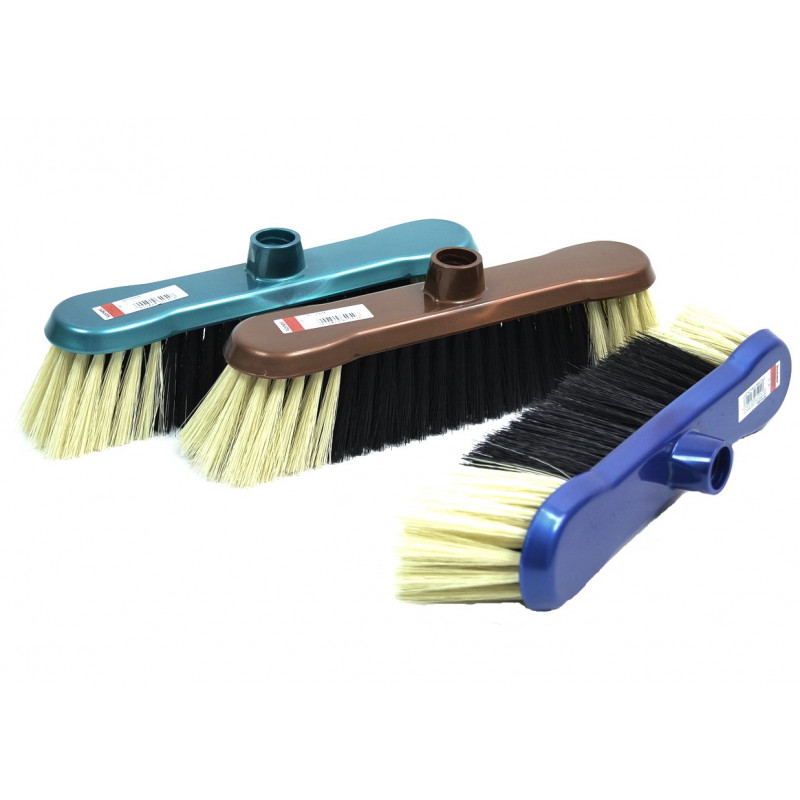 Щітка для підлоги виготовлена з пластика і нейлоновою щетина, ідеально підходить для чищення і прибирання підлоги. Базова деталь - колодка - розроблена так, щоб разом з надійною фіксацією щетини, забезпечити ще більший комфорт і зручність у використанні самої щітки. Миюча частина виконана із спеціальної ПВХ нитки, яка забезпечує зносостійкість щетини і значно подовжує термін служби виробу. ПВХ нитки утримують пил, і навіть найдрібніше сміття, що підвищує якість прибирання. Мітла для прибирання може використовуватися як в домашніх, так і промислових цілях. Щітка довговічна і стійка до погодної дії. Універсальне різьблення підходить до усіх видів ручок і насадок. Використання цієї щітки гарантує комфорт і високу якість прибирання, вона стане вашим незамінним помічником по господарству. Розміри: 26х5см, довжина ворсу 6см. Виробник: Польща.