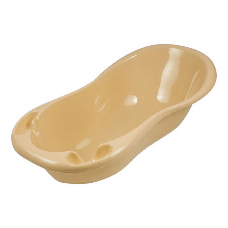 Форма дитячої ванночки обтічна і дуже практична. Перевагою ванни для дітей є зручна спинка що має нахил для купання малюка в положенні сидячи і гладкі безпечні краї. Щоб усі необхідні речі знаходилися поруч, на ванні є спеціальні поглиблення виїмки з боків. Дві отвір-полички стануть прекрасним місцем для засобів гігієни, мила, губки, брязкальця, соски, а також іншого необхідного при кожному купанні приладдя. Усі кути пластмасової ванночки для дітей закруглені для безпеки і комфорту під час купання.