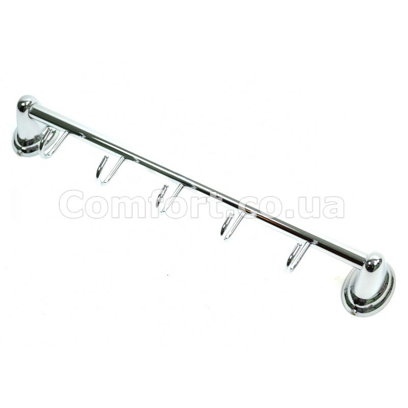 Гачки хром з п'яти 3188-5 настінних незамінний аксесуар в кожному будинку, який служить допоміжним елементом для комфортного і зручного розташування речей, банних рушників і інших предметів, ідеальний варіант для розміщення халатів, верхнього або дитячого одягу на невеликому просторі. Хромований гачок можна розміщувати в різних місцях: на дверях, стінах, бічних стінках пеналів. Вішалку з п'яти гачків можна прикріпити на зручній для використання висоті на кухні, у ванні, в передпокої або у будь-кому другом необхідному місці.