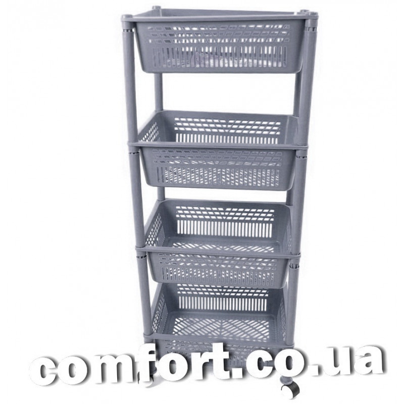 Поличку етажерку використовують для зберігання овочів, фруктів, банних аксесуарів, дитячого приладдя і інших необхідних дрібниць. Органайзер для зберігання має стійку конструкцію, при необхідності можна легко переміщати по будинку. Універсальна етажерка компактна і містка, має чотири полички з перфорованими стінками, виготовлена з кольорової якісної пластмаси.