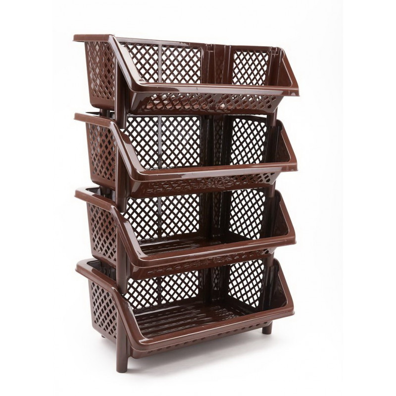 Універсальна етажерка компактна і містка, має чотири полички з перфорованими стінками, виготовлена з кольорової високоякісної пластмаси. Пластикова етажерка для овочів не вимагає особливих умов експлуатації, легко миється і прослужить довгу службу при дбайливій експлуатації. Сфера використання кутової етажерки не обмежена, така поличка просто не замінима в побуті. Стильний і красивий дизайн полички етажерки без проблем впишеться у будь-який інтер'єр. Дійсно гідний товар супер якості!