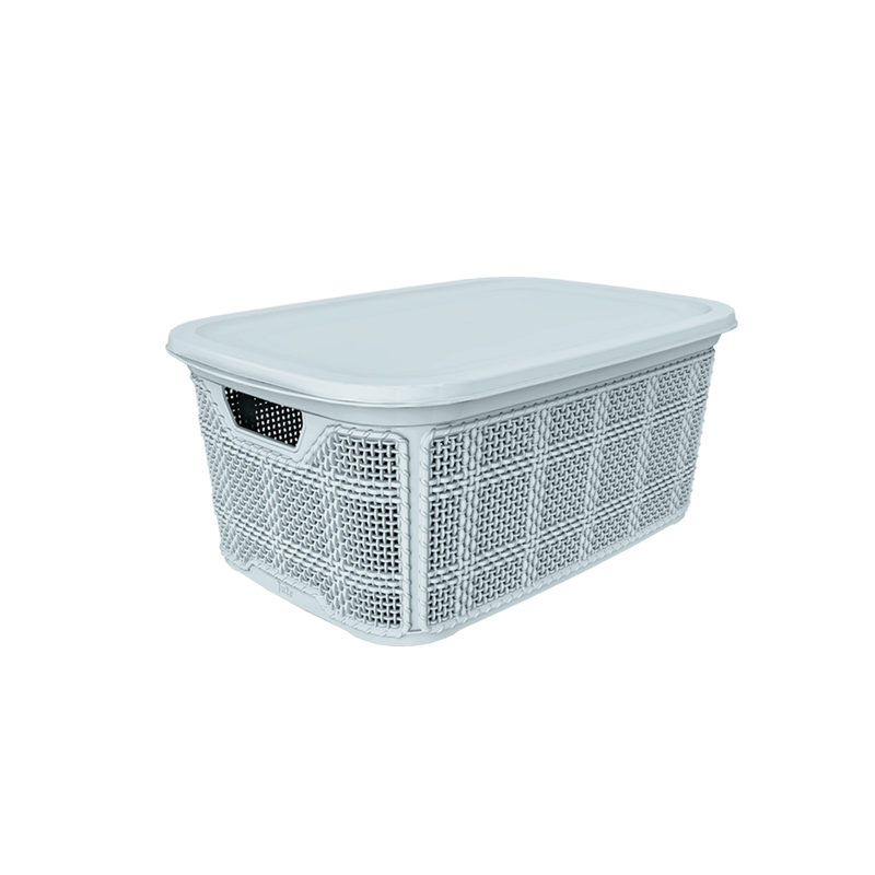Кошик АК-599 плетінка 2,5л з кришкою, призначений для зберігання предметів, дрібних речей, відмінно підійде для зберігання дитячих товарів, іграшок, косметики, канцелярського приладдя або інших корисних дрібниць. Контейнер виготовлений з високоякісного кольорового пластику, безпечного для здоров'я. Конструкція органайзера для зберігання плетінка з кришкою являє собою прямокутний контейнер, на бічних стінках є отвори для циркуляції повітря, з їх допомогою кошик зручно переносити.