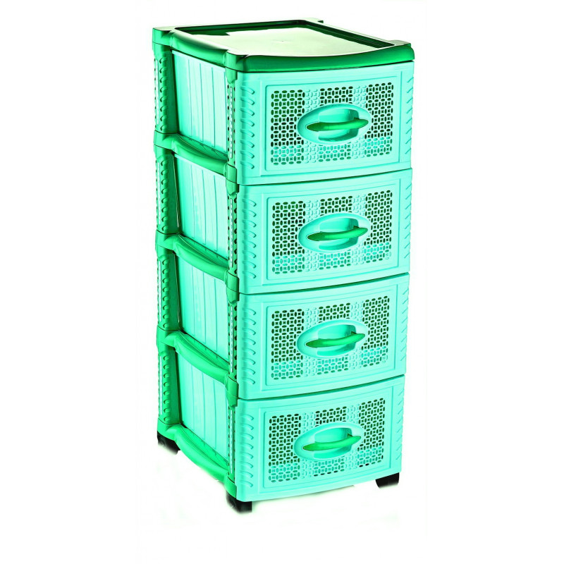 Комод Консенсус пластмасовий має чотири висувні ящики, в які легко поміщаються усі необхідні речі. Комод використовується для зберігання одягу, постільної білизни, дитячих іграшок, предметів особистої гігієни, банного приладдя, косметики, рушників, серветок і інших необхідних дрібниць. Комод виготовляють з кольорової якісної пластмаси.