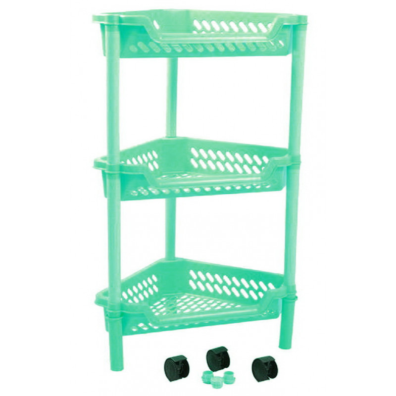 Поличка етажерка триярусна пластмасова, підлогова, кутова, стильна і зручна, прикрасить кожен куточок будинку. Етажерку можна поставити в спальню, кухню, ванну, передпокій, до дитячої кімнати або будь-якого іншого необхідного місця. Пластмасова етажерка є відмінними функціональними меблями і супер системою зберігання речей. Поличку етажерку використовують для зберігання овочів, фруктів, банних аксесуарів, дитячого приладдя і інших необхідних дрібниць.