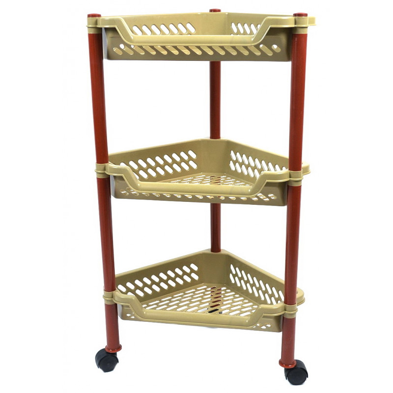 Поличка етажерка триярусна пластмасова, підлогова, кутова, зручна, та практична. Етажерку можна поставити в спальню, кухню, ванну, передпокій, до дитячої кімнати або в будь-яке інше необхідне місця. Пластмасова етажерка є відмінними функціональними меблями і супер системою зберігання речей. Поличку етажерку використовують для зберігання овочів, фруктів, банних аксесуарів, дитячого приладдя і інших необхідних дрібниць.