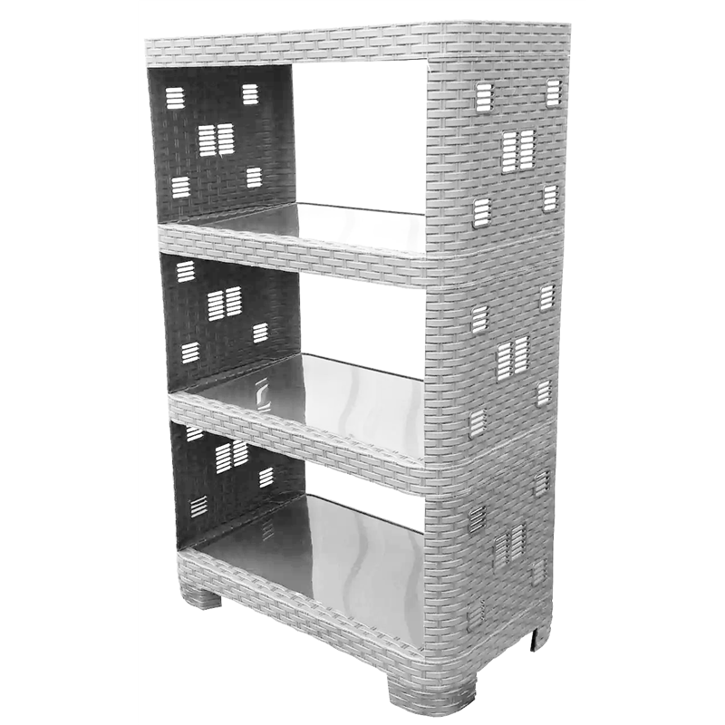 Пластикова поличка етажерка ротанг 4 яруси - це універсальний, якісний виріб для зберігання взуття, книг, необхідного приладдя і інших дрібниць. Сфера використання пластмасової підлогової етажерки не обмежена, така полиця згодиться в кожному будинку. Етажерка ротанг стильна і зручна, прикрасить кожен куточок будинку. Етажерку можна поставити в спальню, кухню, ванну, передпокій, до дитячої кімнати у будинку, на дачі, в майстерні або в перукарні.