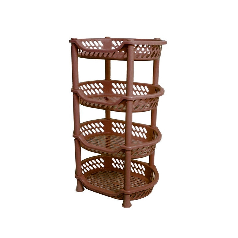 Поличка етажерка пластмасова, підлогова, овальної форми, стильна і зручна, прикрасить кожен куточок будинку. Етажерку можна поставити в спальню, кухню, ванну, передпокій, до дитячої кімнати у будинку, на дачі, в майстерні або в перукарні. Пластмасова етажерка є відмінними функціональними меблями і супер системою зберігання речей.