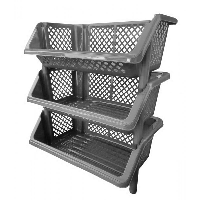 Універсальна етажерка компактна і містка, має три полички з перфорованими стінками, виготовлена з кольорової високоякісної пластмаси. Пластикова етажерка для овочів не вимагає особливих умов експлуатації, легко миється і прослужить довгу службу при дбайливій експлуатації. Сфера використання кутової етажерки не обмежена, така поличка просто не замінима в побуті. Стильний і красивий дизайн полички етажерки без проблем впишеться у будь-який інтер'єр. Дійсно гідний товар супер якості!