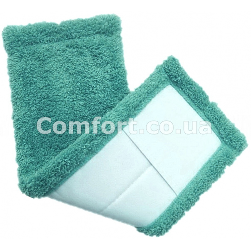 Запаска насадка на швабру - натирач Х9010 щільна з кольорової мікрофібри з підкладкою, призначена для сухого або вологого прибирання підлог з різним гладким покриттям - кахель, плитка, паркет, лінолеум, ламінат. При сухому прибиранні відмінно збирає пил, а при вологому прибиранні не залишає розводи. Запаска на натирач махра ефективна без застосування миючих засобів. Цю насадку на швабру можна стирати в пральній машині при температурі до 40С.