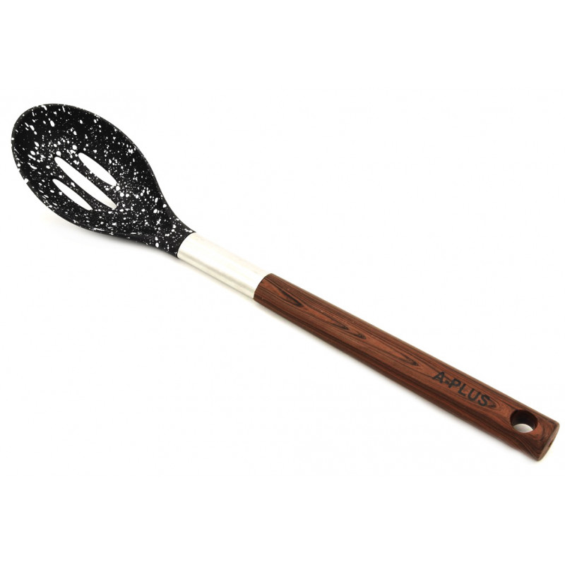 0348 Ложка гарнірна мармур тефлон з прорізами 34см оптом від виробника А-Плюс за низькою ціною в Україні.