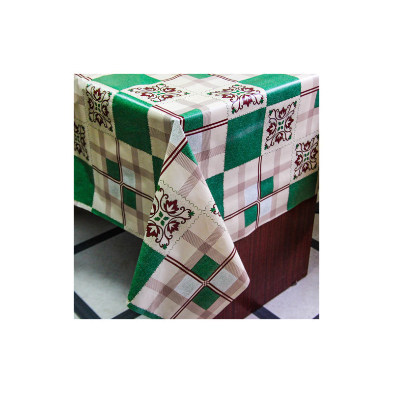 Клейонка 1,37*25м рулон ПВХ на нетканій основі 8186E зелена квадрати з візерунком