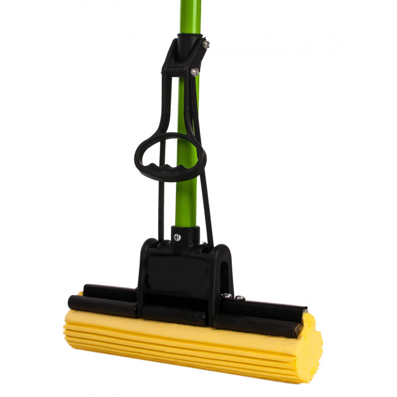 Єврошвабра для прибирання оснащена міцним металевий віджимним механізмом, завдяки якому руки завжди залишаються сухими і не треба нагинатися, що б вижати губку. Губка моп добре видаляє забруднення, виготовлена з синтетичного матеріалу PVA. Пластмасова ручка для віджимання дозволяє відчути максимальний комфорт при використанні швабри. На кінці ручки є спеціальна петля, завдяки якій швабру можна підвісити у будь-якому зручному місці. Відмінна єврошвабра з віджиманням супер якості тільки у нас за дійсно доступною ціною! Використовуючи цю швабру для прибирання Ви отримаєте чудовий результат.