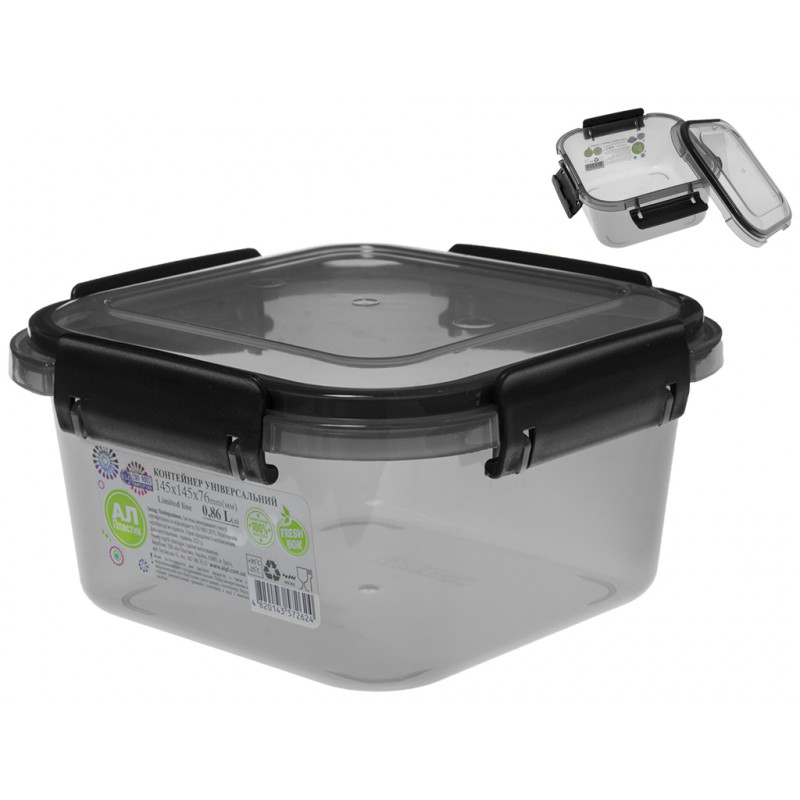 Контейнер чорний прозорий 0,86л з герметичною кришкою, квадратної форми, виготовлений з високоякісної харчової пластмаси, яка може контактувати з їжею, абсолютно безпечна для здоров'я, не містить шкідливих речовин, не вбирає сторонні запахи і не має свого. Ємність для продуктів призначена для зберігання і транспортування свіжих і заморожених продуктів, ягід, фруктів, овочів, а також зручно використовувати для розігріву їжі в мікрохвильовій печі. Бокси контейнери з харчового пластика з засувками незамінні для тих, хто любить відпочивати на природі. Ємність комплектується кришкою, яка щільно закривається, це перешкоджає випадковому відкриттю кришки.