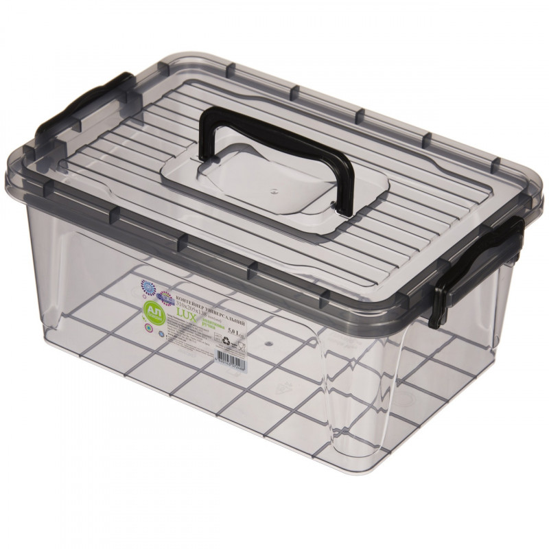 Контейнер чорний прозорий 5л з ручкою виготовлений з високоякісного харчового пластику, який може контактувати з їжею, абсолютно безпечний для здоров'я, не містить шкідливих речовин. Бокс для харчових продуктів з ручками засувками, прямокутної форми, з кришкою і ручкою для перенесення на неї, призначений для зберігання і транспортування продуктів харчування і дрібних побутових предметів, також підходить для зберігання дитячих іграшок та інших необхідних дрібниць домашнього використання, дуже зручний для пікніка.