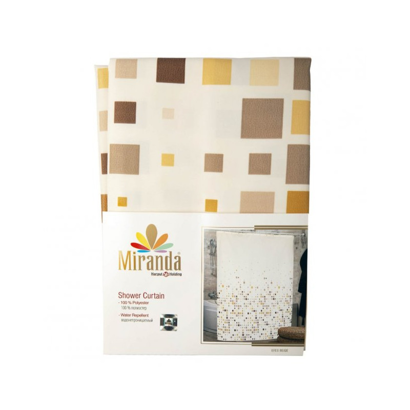 Штора для ванної кімнати Miranda преміум-класу відмінна прикраса інтер'єру і дуже функціональна річ, яка допомагає створити гарний настрій, як під час прийому душу, так і після нього. Шторка призначена для комфортного прийняття душу, забезпечує гігієнічність приміщення, надійний захист від вологи, перешкоджає попаданню води на підлогу і інші предмети ванної кімнати, а так само, створює відокремлену обстановку і неповторний настрій при прийомі водних процедур. Фіранка підійде як для звичайної ванни, так і для душової кабінки і нестандартних ванн. Практична штора для ванної кімнати не лише захищає від бризок води, а ще служить декоративним елементом інтер'єру. Підібрати фіранку для ванни дуже легко, оскільки вона представлена у великому асортименті незвичайних кольорів і шалених забарвлень, які підійдуть до будь-якого дизайну ванної кімнати. Найміцніші і довговічніші тканинні штори, тканина для їх виготовлення обробляється спеціальним водовідштовхувальним просоченням, такі штори можна стирати в пральній машині. Тканина для фіранок до ванної кімнати може бути однотонна або з малюнком, саме такі штори мають великий попит, тому що виглядають оригінально і нестандартно. Візерунки, нанесені на шторку у вигляді фото картинки, і надає їй вишуканості.