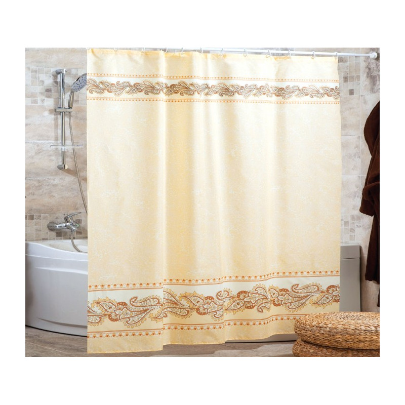 Тканинна штора для душу з водовідштовхувальним просоченням, призначена спеціально для приміщень з підвищеною вологістю. Зносостійкий матеріал не линяє і не вицвітає, можна прати в пральній машині при температурі 40°C, шторка швидко сохне і має довгий термін експлуатації. Тканинна шторка із зручними розмірами охоплює ванну повністю, тому добре захищає від розбризкування води, верхній край шторки з отворами для кілець. Через легкої будови полотна, штора швидко підвішується, а завдяки якісним пластиковим кільцям плавно і м'яко переміщається по карнизу. Тканинна штора швидко і легко відкривається, закривається і стає на потрібне місце. Щільна і надійна тканинна штора створена спеціально для тривалого і повноцінного використання. Поверхня штори не реагує на хімію, не вимагає особливого догляду і надовго зберігає свій первинний зовнішній вигляд. Штора для ванни і душа відрізняється високою якістю і демократичною ціною. Тканинна штора ідеальна для використання у ванні, в душі або на дачі. Для закінченого інтер'єру у ванній кімнаті штора є необхідним аксесуаром. Стильна шторка для душу стане яскравим акцентом в дизайні ванної кімнати і перетворить безлику кахельну ванну кімнату на куточок затишку і комфорту. Якщо приміщення оформлене в спокійних тонах, то за допомогою штори можна створити яскравий акцент, який завершить загальну концепцію і гармонійно доповнить інтер'єр ванної кімнати. Ця тканинна штора Miranda шикарного якості буде приносити задоволення, і радувати своїми витонченими забарвленнями у ванній кімнаті. Розміри: 180х200см. Виробник: Туреччина.