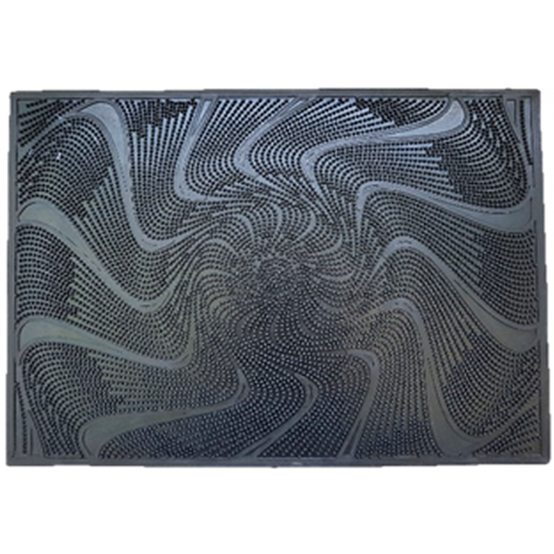 Килимок гумовий К-307 прямокутний з гумовими ворсинками, які створюють малюнок, призначений для використання усередині і зовні приміщення, а також для захисту приміщення від пилу, бруду, піску, вологи і снігу. Прогумована основа надійно утримує килимок на будь-якій поверхні, будь то паркет, ламінат, керамічна плитка або лінолеум, при цьому, не дряпаючи і не ушкоджуючи її. Гумовий килимок виготовлений з гуми стійкою до зносу, не твердне при низьких температурах і не ковзає на вологій поверхні. За рахунок комбінації ворсинок, має поліпшені очисні властивості, його легко мити. Купуючи придверний килимок або килимок в передпокій, Ви заощадити час на прибиранні. За правильних умов експлуатації гумовий килимок довго служитиме, не змінюючи зовнішній вигляд. Такий килимок найбільш якісний і довговічний, експлуатується круглий рік. Розміри: 57х43х0,5см. Виробник: Україна.