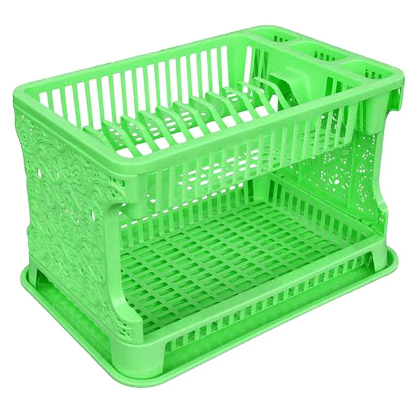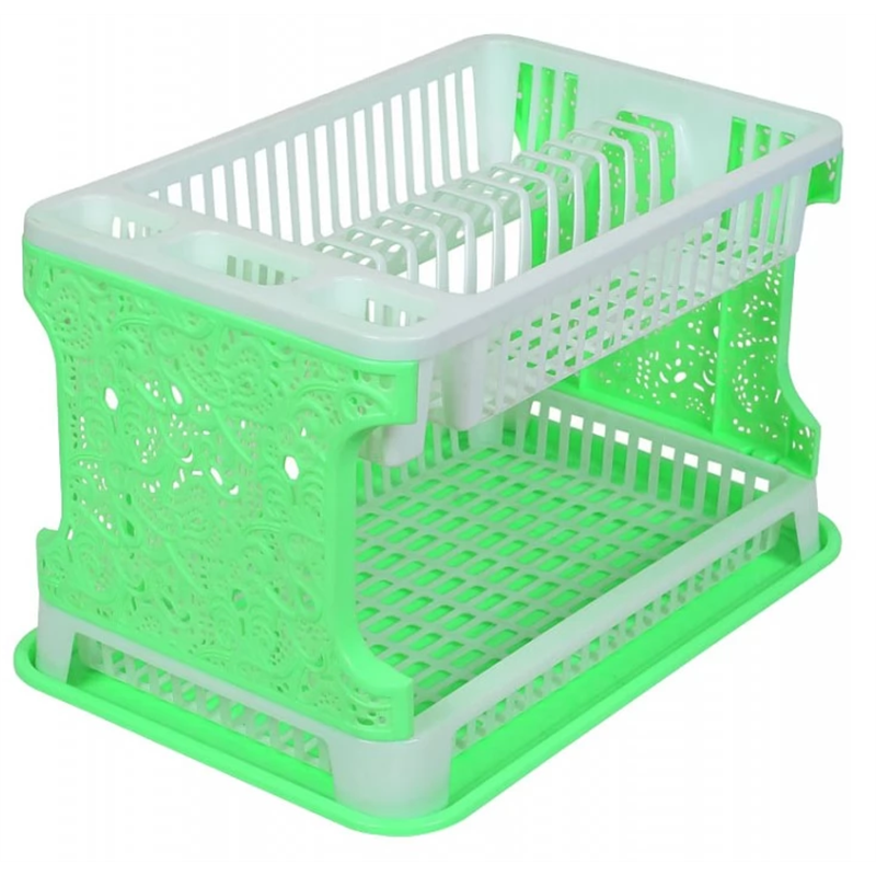 Сушарка для посуду двоярусна Ажур необхідна для кожної господині, призначена для сушіння та зберігання посуду. Сушарка для посуду пластмасова, двоярусна, настільна, зручна та компактна, використовується для сушіння тарілок, чашок, склянок, столових приладів. Така сушарка для посуду суттєво заощаджує місце на кухні або на дачі, її можна розмістити на столі, у шафі або на іншій зручній поверхні. Сушарка для посуду виготовлена з міцного, високоякісного, кольорового пластику, стійка до перепадів температури та вологості, декорована ажурним візерунком. Пластикова сушарка для посуду містка, двоярусна має верхній ярус для сушарки тарілок та три відділи для столових приладів, нижній сітчастий ярус використовується для чашок. Для Вашої зручності сушарка для посуду комплектується пластиковим підносом для збору води. Наявність піддону в сушарці для посуду дозволяє захистити поверхню столу від негативного впливу вологи, нижній піддон легко виймається і миється при необхідності. Стильна та функціональна сушарка для посуду ажур гармонійно впишеться у будь-який інтер'єр сучасної кухні. Сушарка має сучасний дизайн та стане ідеальним варіантом при виборі сушарки для посуду для бару, кафе, їдальні. Розміри: 40х26х30см. Виробник: Україна.