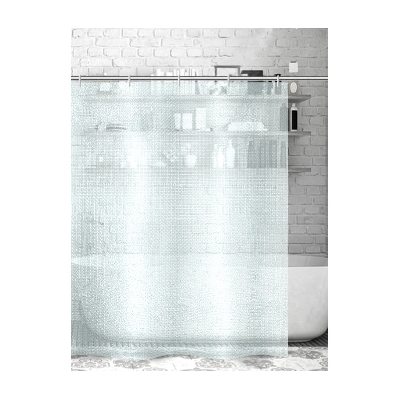 Штора для ванної кімнати з 3D ефектом відмінна прикраса інтер'єру і дуже функціональна річ, яка допомагає створити гарний настрій, як під час прийому душу, так і після нього. Шторка призначена для комфортного прийняття душу, забезпечує гігієнічність приміщення, надійний захист від вологи, перешкоджає попаданню води на підлогу і інші предмети ванної кімнати, а так само, створює відокремлену обстановку і неповторний настрій при прийомі водних процедур. Штори для душу або ванни з оригінальним об'ємним візерунком візуально збільшить простір Вашої ванни або душової кімнати. Фіранка підійде як для звичайної ванни, так і для душової кабінки і нестандартних ванн. Штора для ванної кімнати не лише захищає від бризок води, а ще служить декоративним елементом інтер'єру. Підібрати фіранку для ванни дуже легко, оскільки вона представлена у великому асортименті незвичайних кольорів, які підійдуть до будь-якого дизайну ванної кімнати. Можна сказати, що шторка прозора, але при цьому видимий лише силует людини. Штора для душу виготовлена з щільного високоякісного силікону з водовідштовхувальним просоченням, призначена спеціально для приміщень з підвищеною вологістю. Зносостійкий матеріал не линяє і не вицвітає, шторка швидко сохне і має довгий термін експлуатації. Шторка із зручними розмірами охоплює ванну повністю, тому добре захищає від розбризкування води, верхній край шторки з отворами для кілець, які йдуть в комплекті. Штора для ванни і душа відрізняється високою якістю і демократичною ціною. Штору ідеально використати у ванні, в душі або на дачі. Для закінченого інтер'єру у ванній кімнаті штора є необхідним аксесуаром. Однотонна прозора шторка з 3D об'ємним зображенням дуже ефектно виглядає. Стильна шторка для душу стане яскравим акцентом в дизайні ванної кімнати і перетворить безлику кахельну ванну кімнату на куточок затишку і комфорту. Якщо приміщення оформлене в спокійних тонах, то за допомогою 3D штори можна створити яскравий акцент, який завершить загальну концепцію і гармонійно доповнить інтер'єр ванної кімнати. Дана 3D штора приноситиме Вам задоволення, і радувати своїми витонченими забарвленнями у ванній кімнаті. Розміри: 180х180см. Виробник: Китай.