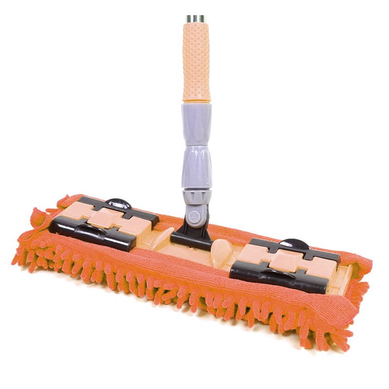 Двосторонній затиск по краю платформи натирача фіксує знімну насадку і дозволяє швидко і легко її знімати. Завдяки бічним затискам можна використати будь-який клапоть тканини для прибирання, який є у Вас під рукою. Платформа натирача виконана з міцного, високоякісного, кольорового пластика, може рухатися під будь-яким кутом, на будь-якій площині. Обертання основи натирача дозволяє прибрати навіть в самих важкодоступних місцях, під меблями, диванами, навколо ніжок столів і стільців, на сходинках, протерти стіни від пилу за шафами, помити вікна. На кінці ручки є спеціальна петля, завдяки якій натирач можна підвісити у будь-якому зручному місці.