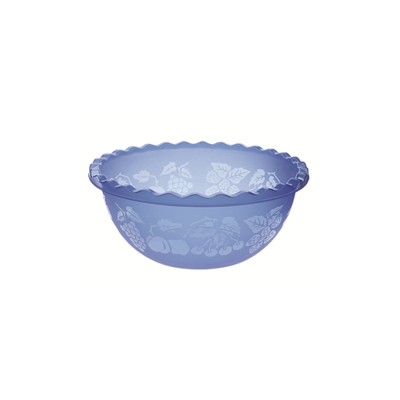 Миска візерункова 9л пластмасова, прозора, круглої форми, необхідний предмет у домашньому господарстві, використовується для зберігання та транспортування продуктів, незамінна для ручного прання, замочування та зберігання білизни, а також для інших господарсько-побутових потреб. Миска пластмасова компактна, практична, зручно брати з собою на дачу та на пікнік. Миска виготовлена з міцної, високоякісної, кольорової, харчової пластмаси, стійка до перепадів температури, безпечна при контакті з продуктами, не вбирає сторонніх запахів і не має свого. Миска має міцні стінки, що витримують максимальне завантаження, механічні удари, що виникають при експлуатації, не деформуються у процесі використання. Завдяки своїй круглій формі, стійкому дну та закругленим гладким краям вона зручна у застосуванні, добре миється як водою, так і іншими миючими засобами. Міцні, широкі борти дозволяють піднімати та переносити завантажену ємність, вона стійка до високих та низьких температур. Миска має достатню міцність і еластичність, тому вона має тривалий термін експлуатації і може служити довгі роки. Миска зручно поєднує функції миска таз, що робить її застосування в домашньому господарстві дуже практичним. Миска надійна і довговічна ідеальна для використання з господарсько-побутовою метою, вона не займає багато місця, хоча досить містка. Яскраве забарвлення та сучасний дизайн круглої миски прикрасять інтер'єр кожного будинку. Об'єм 9л. Розміри: 35,5х15см. Виробник: Туреччина.