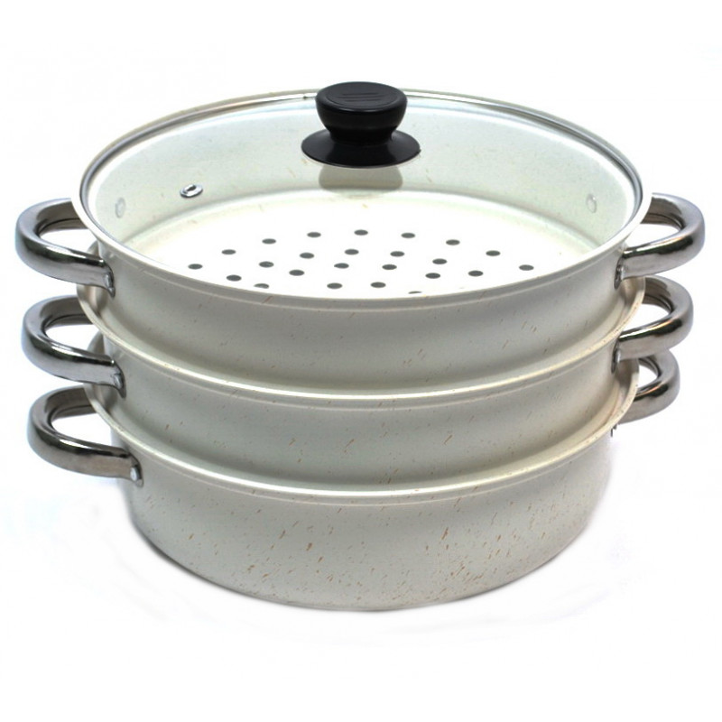 2068 Каструля пароварка 3-х рівнева мармур 28см оптом від виробника А-Плюс за низькою ціною в Україні.